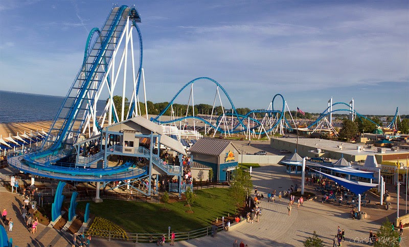 CedarPoint est un parc d’attraction Américain, situé dans l’Ohio, à Sandusky, sur le bord du lac Erié. Le parc contient 69 attractions, parmi lesquelles 16 coasters en fonctionnement, ce qui en fait la deuxième capitale des coasters, derrière SixFlags Magic Mountain et ses 19 coasters. Le parc a ouvert en 1870, ce qui en fait le 2eme parc le plus ancien des USA, derrière Lake Compounce. Le parc s’étend sur une presque-île, le long d’une plage de sable blanc. Le parc a détenu plusieurs records au niveau des coasters, que ce soit la hauteur, la vitesse, ou la longueur.. Cedar Point s’étend aujourd’hui sur 147 hectares.