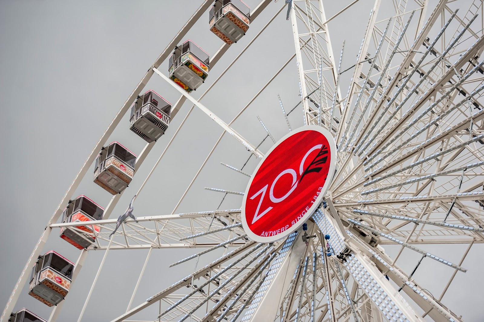 Sur la Place Reine Astrid d’Anvers, juste devant l’entrée du ZOO, trône à nouveau l’impressionnante Grande Roue du ZOO. Elle y restera du vendredi 2 juin au dimanche 27 août inclus. The View on the ZOO vous hisse à une hauteur de 55 mètres, ce qui en fait la plus imposante grande roue itinérante d’Europe!