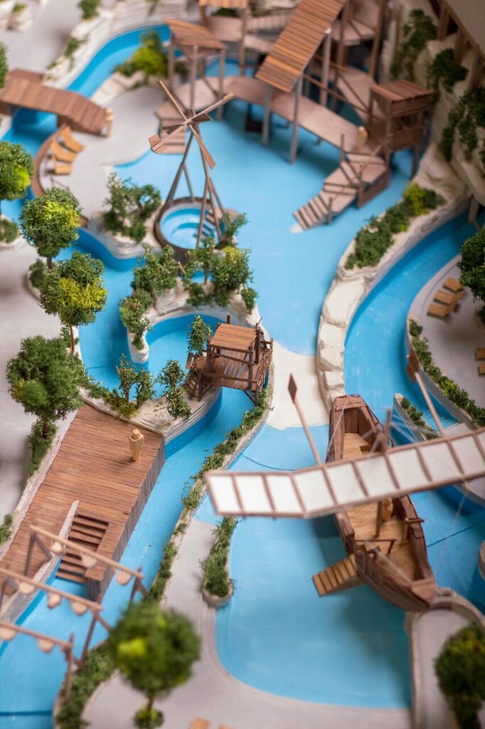 Bellewaerde AquaparkLe parc aquatique indoor vise à devenir le parc aquatique le plus complet pour toute la famille. Lors de la conférence de presse, Bellewaerde et LD Architectes ont présenté le contenu de Bellewaerde Aquapark à l’aide d’une maquette. On y voit des jeux aquatiques construits dans une oasis de verdure, où une dizaine d’arbres et d’autres seront plantés. Les enfants de tout âge pourront partir à la découverte dans ou sur les deux bateaux d’expédition interactifs ou l’aire de jeux avec un grand seau inclinable et beaucoup d’autres surprises. Les tout-petits ne sont pas en reste avec une pataugeoire et aire de jeux spécialement conçue pour eux. La lazy river, une rivière au courant d’eau tranquille qui parcourt l’ensemble du parc, sera constituée, entre autres, d’une grotte, d’un mur d’escalade et de nombreux effets aquatiques. Une zone extérieure avec sa pelouse parsemée de bains de soleil pour les chaudes journées d’été sera également prévue. En plus, les visiteurs pourront se restaurer dans le restaurant de Bellewaerde Aquapark ou prendre place sur la terrasse à côté de la piscine ou la terrasse extérieure. Tout au long de l’année, on pourra profiter d’une température agréable de 34°C dans le parc aquatique.