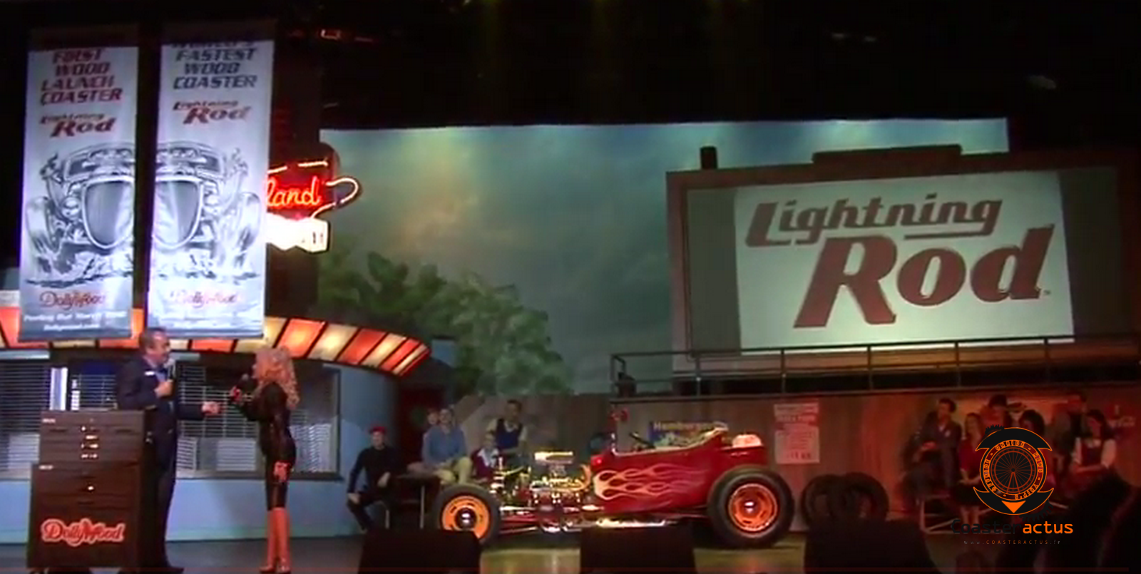 LIGHTNING ROD (en français, paratonnerre) . A 117 km/h, elle est non seulement la plus rapide montagne russe en bois, mais aussi le premier wooden coaster lancé au monde (launch)